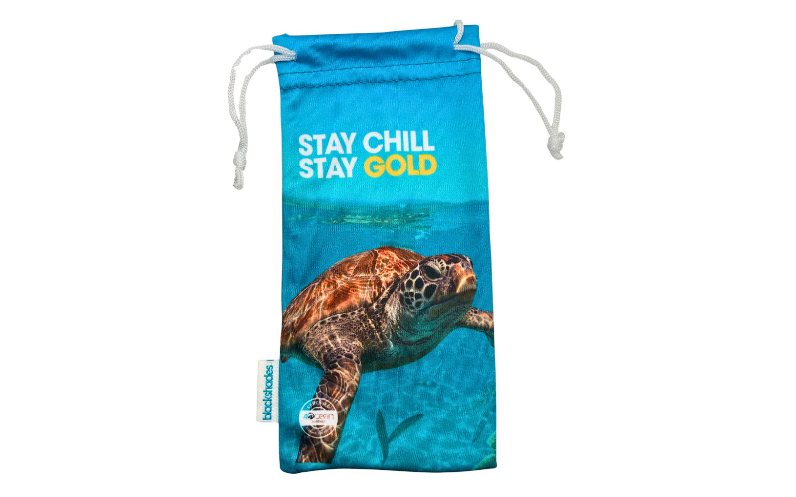 Black Shades Clam Shell Case— See Through BS. The clam shell case is the ultimate sidekick for your Black Shades. Made from recycled plastic water bottles, this seafoam teal beauty isn't just about looking good; it’s about doing good. Wrapped in lightweight 100% RPET, it boasts our signature logo on the front, a cheeky “See Through BS” on the back, and a motivational “Stay Gold” inside to remind you to shine bright in every move you make.